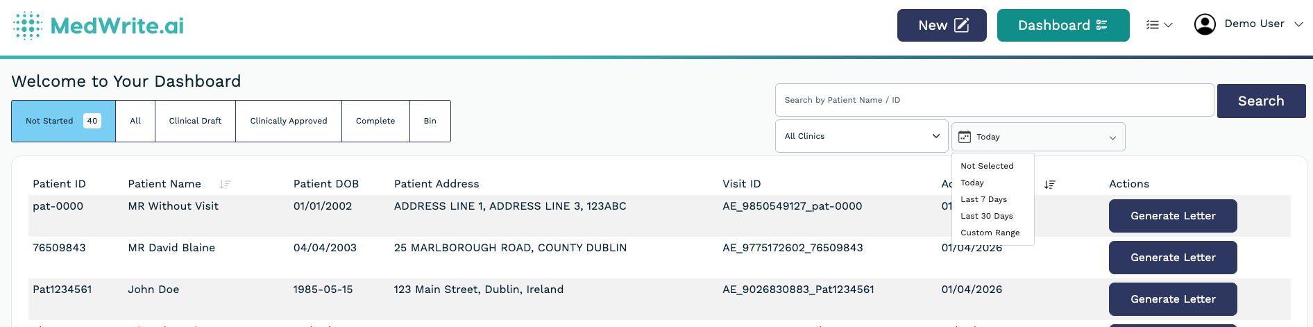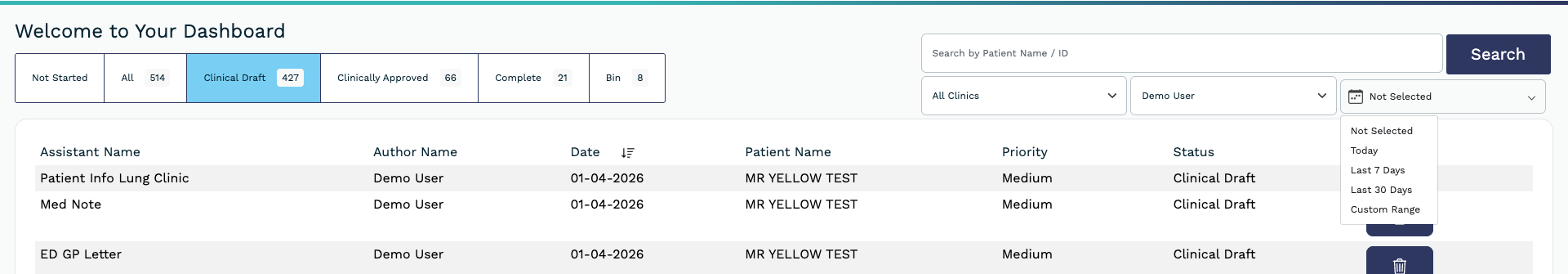 Filter behaviour is now consistent across Not Started, letter-status, and Bin tabs. A dedicated filter functionality on the Not Started tab makes it easier to find pending work.