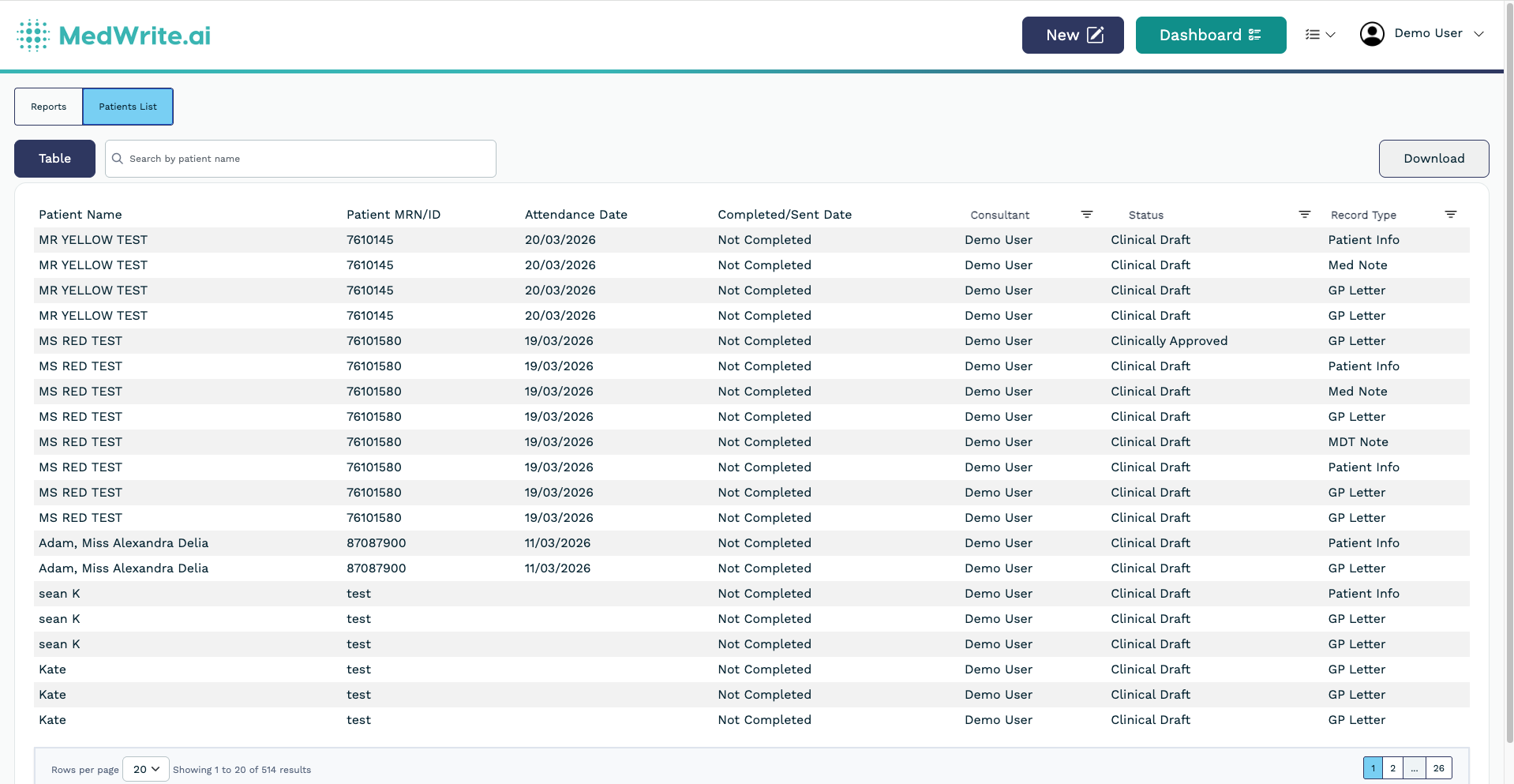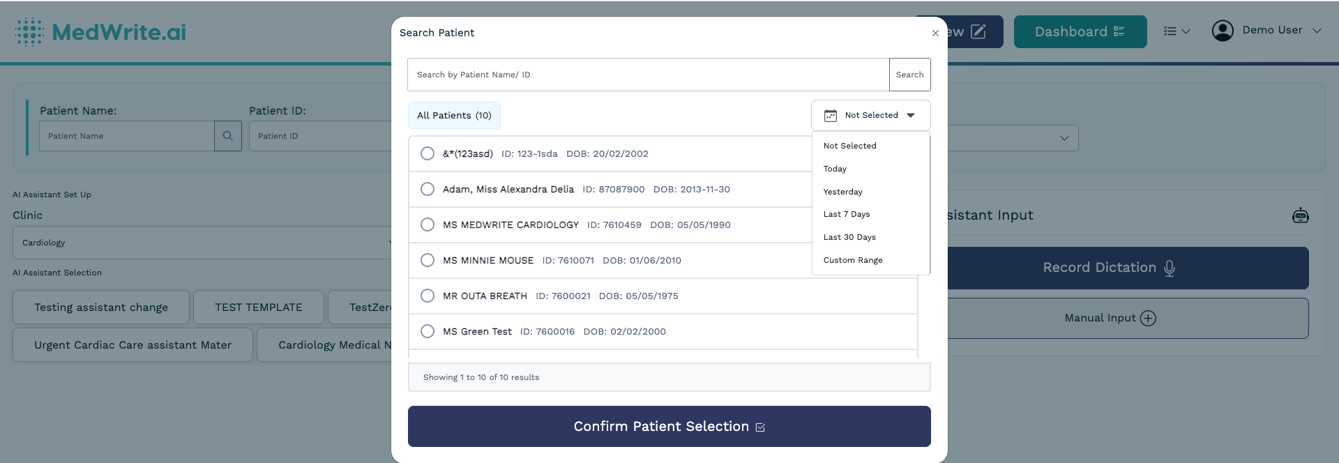 Bulk Operations let clinic managers create visits for multiple patients at once. A new Reports Dashboard gives clinical leaders real-time KPIs on documentation activity. Voice transcription gets three upgrades: live streaming, ambient detection, and Arabic-English bilingual support.New Features